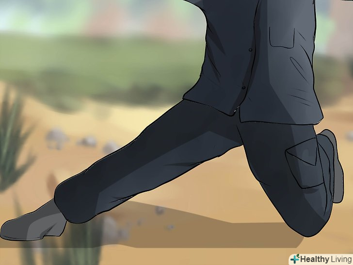 Знизьтеся перед кидком і сфокусуйте всю силу кидка позаду вас. зігніть і притисніть до землі так, щоб ваше коліно вказувало на вашу мету. У той же час витягніть так, щоб бічна сторона вашого черевика торкнулася землі. Тримайте своє тіло прямо і напружено для максимальної стабільності. [8]- Мається на увазі, що позиція, стоячи на колінах, яку ви використовуєте, щоб кинути гранати, «не є» тим же самим типовим видом позиції, яку ви можете використовувати в звичайних небойових ситуаціях (так, коли ви повинні взяти щось з підлоги). Ця змінена позиція надає додаткову стабільність і підтримку. Зробивши кидок, ви не зможете просунутися, просто опускаючись одним коліном на підлогу і згинаючи інше.