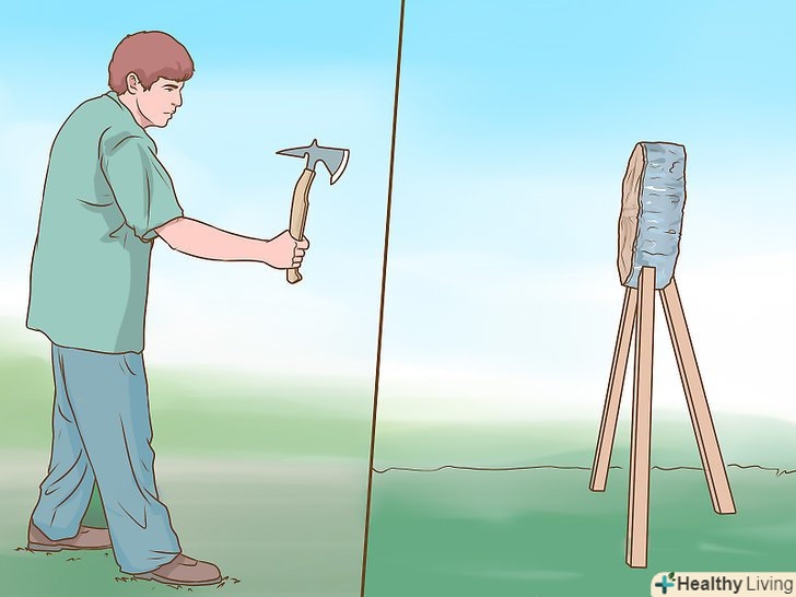 - Як правило, для мети використовують дерево, тому що його можна використовувати знову і знову. Дерево дешеве, доступне і воно не зашкодить ваші томагавки. Замість звичайних шматків деревини дістаньте товсті паленья і кидайте томагавки в їх плоский зріз.
