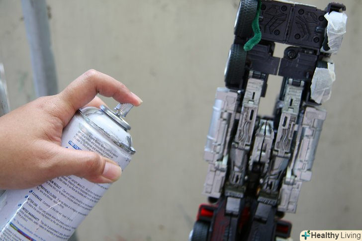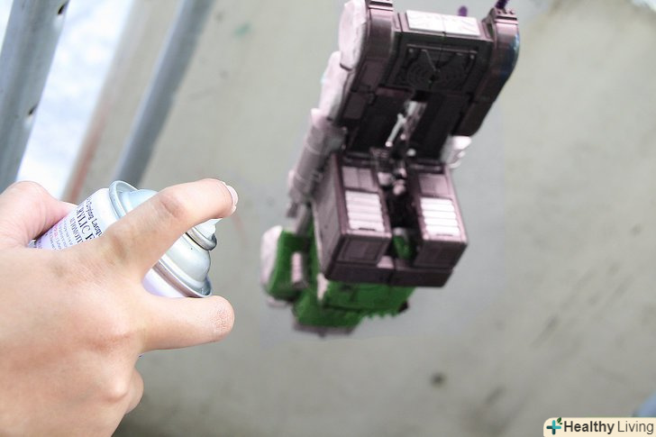 Розпиліть колір фону, будьте обережні, не наносите занадто багато фарби. якщо фарба стікає або утворює плями, значить ви розпилюєте її занадто товстим шаром. Переміщайтеся навколо області фарбування, і робіть рівномірні рухи балончиком. Нехай перший шар висохне перед нанесенням другого. Нанесіть кілька тонких базових шарів замість 1 товстого.