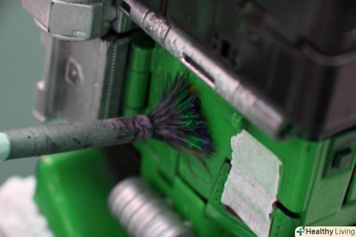 Використовуйте клейку стрічку, щоб покрити ті області, які ви не хочете фарбувати в камуфляж. це може включати рукоятку гвинтівки або фари вантажівки.- Якщо ви фарбуєте предмет невеликого розміру, підвісьте його або розмістіть на шматку картону, щоб на ньому осідала зайва фарба.