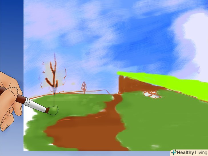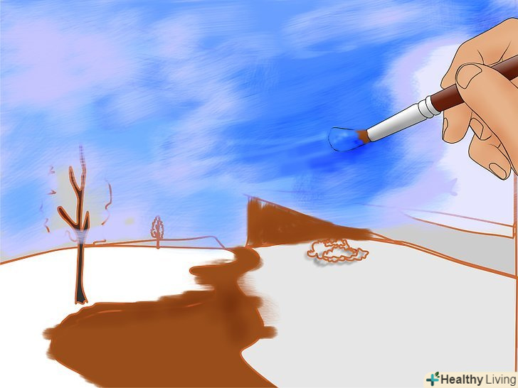 Спочатку напишіть небо.- Якщо небо має багато відтінків, просто заповніть його основним кольором.