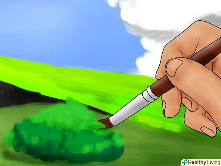 - Щоб отримати насичені і яскраві кольори, змішуйте фарби з найближчими "сусідами" по колірному колу – наприклад, блакитний і зелений дають блакитно-зелені відтінки. Якщо вам потрібні сіруваті або коричневі тони, змішуйте фарби, протилежні на колірному колі – жовту з фіолетовою або зелену з червоною. Нейтральні відтінки, отримані в результаті змішання, виглядають більш живими, ніж просто коричнева або сіра фарба. Крім того, якщо змішані кольори присутні на картині і окремо, це створить колірну гармонію – наприклад, блакитне небо, помаранчеві маки, і суміш блакитного з помаранчевим, що дає гарний оливково-зелений або насичений коричневий для гілок і листя.
