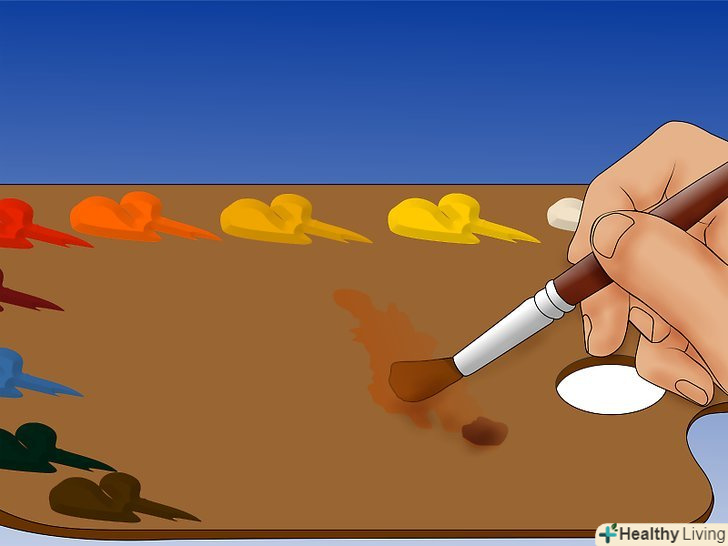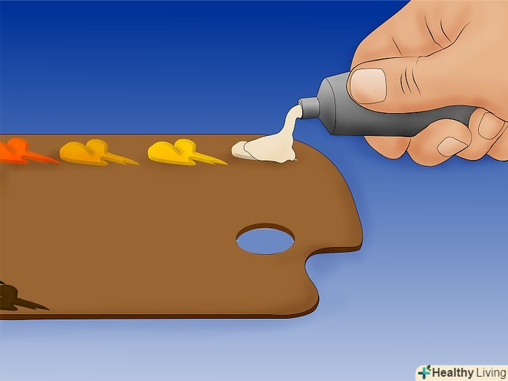 Видавіть фарби на палітру. заведіть звичку розташовувати їх кожен раз в одному і тому ж порядку. З часом ви будете пам'ятати, де знаходиться який колір, не дивлячись. [1] це особливо зручно, якщо ви пишете картину на пленері.