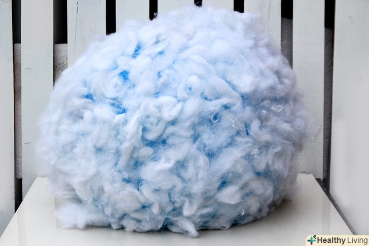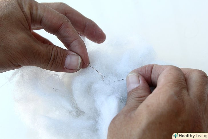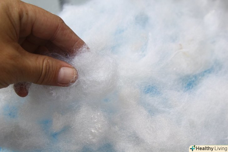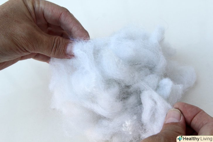 Вспушіть матеріал. акуратно тягніть за пучки матеріалу, щоб розпушити волокно. Нехай одні пучки виглядають крупніше інших. Тепер ваша конструкція буде більш схожою на хмару. [4]