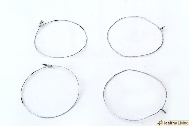 Скрутіть дріт у кільця. візьміть перший шматок дроту і зведіть обидва кінці так, щоб вони поєдналися на 2,5 сантиметра кожен. Скрутіть кінці, щоб вийшло цілісне кільце. Повторіть дії для інших шматків.