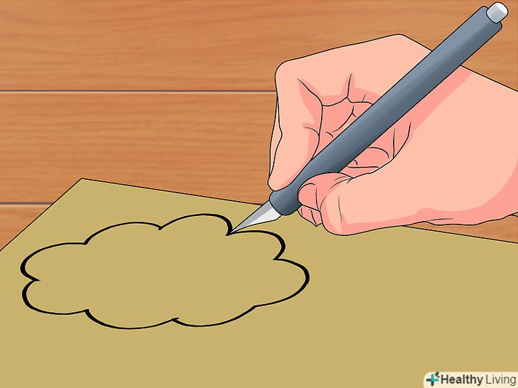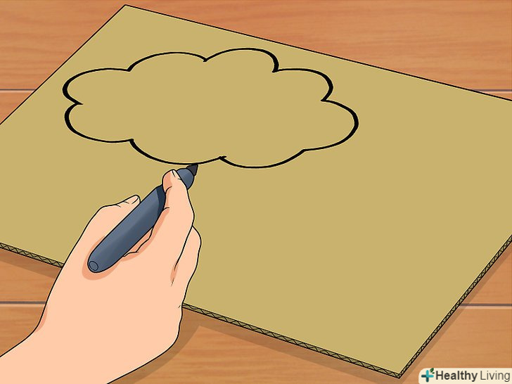 Виріжте хмару з картону. Візьміть гострі ножиці або канцелярський ніж, щоб вирізати хмару по контуру. Коли шаблон буде готовий, зайвий картон можна викинути. [9]