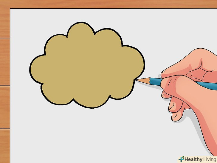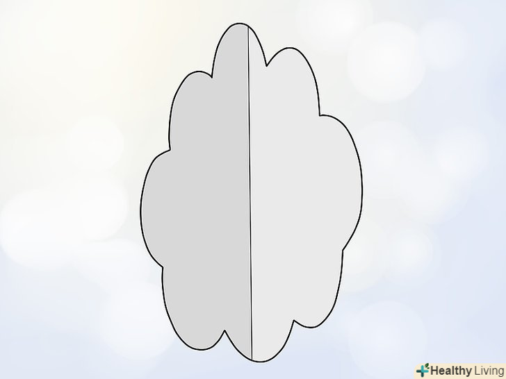 Обведіть шаблон хмари на щільному білому папері. вибирайте щільний папір, щоб хмара зберігала форму. Обведіть шаблон на двох аркушах щільного білого паперу. Використовуйте олівець і не наводьте контур, щоб не залишати на білому папері темних позначок. [10]