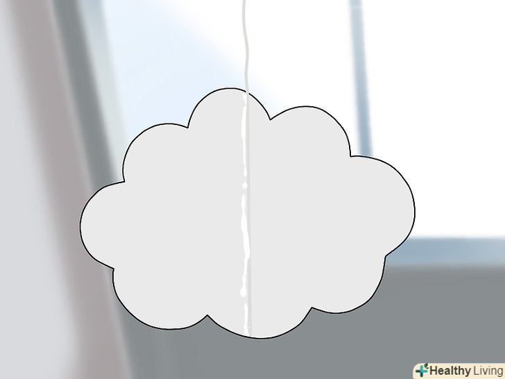Прикріпіть хмару до стелі. Візьміть скотч і приклейте верхній край волосіні до стелі. Для більш надійного кріплення можна вкрутити в стелю невеликий гак. Зробіть на кінці волосіні петлю і накиньте на стельовий гак.