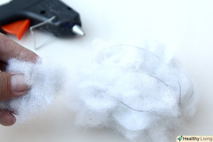 Приклейте поліефірну вату до каркасу гарячим клеєм. візьміть довгу смугу волокна з поліефіру і нанесіть гарячий клей по всій довжині, а потім оберніть матеріал навколо каркаса. Така смуга повинна накривати хоча б два кільця.- Дійте дуже швидко, оскільки гарячий клей швидко застигає!