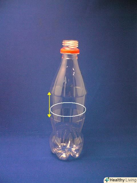 Відзначте і розріжте пляшку навпіл, приблизно в 7,5-8 см вище того місця, де буде рифлений обід, щоб у вас вийшли рівні краї.