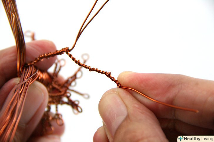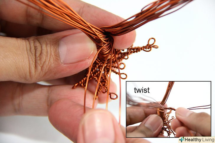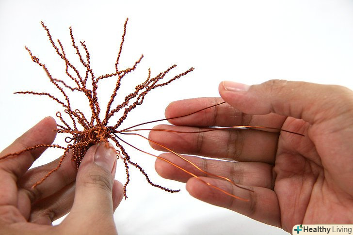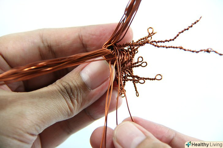 Розділіть петлі на більш дрібні пучки дроту (можливо, дві або три нових петлі). почніть скручувати ці петлі по черзі, потім розділіть їх знову і продовжуйте скручування, поки не утвориться подобу кореневої системи. У вас вийдуть міні-петлі в кінці кожного кореня. Використання кусачки, надріжте ці петлі, щоб зробити кінці коренів.