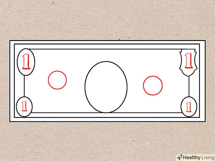 Щоб ваша банкнота виглядала більш реально, намалюйте деякі лози з листя, що охоплюють верхні кути. (цей крок не 100% обов'язковий, але ви можете це зробити, якщо хочете).