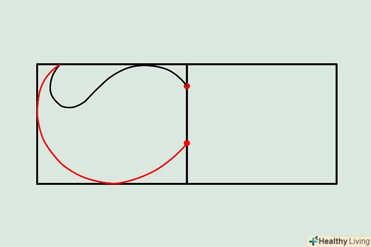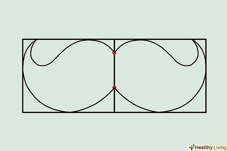Намалюйте вертикальну лінію, що ділить прямокутник на дві рівні частини. намалюйте перевернуту «S» на правій стороні і криву лінію на нижній правій стороні. Зробіть те ж саме з іншого боку, щоб малюнок виглядав симетричним.