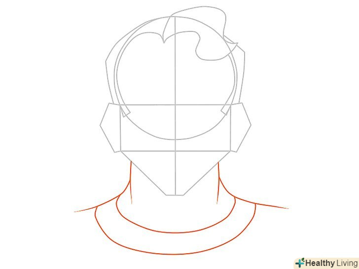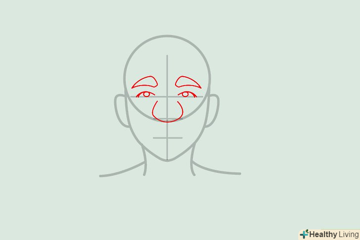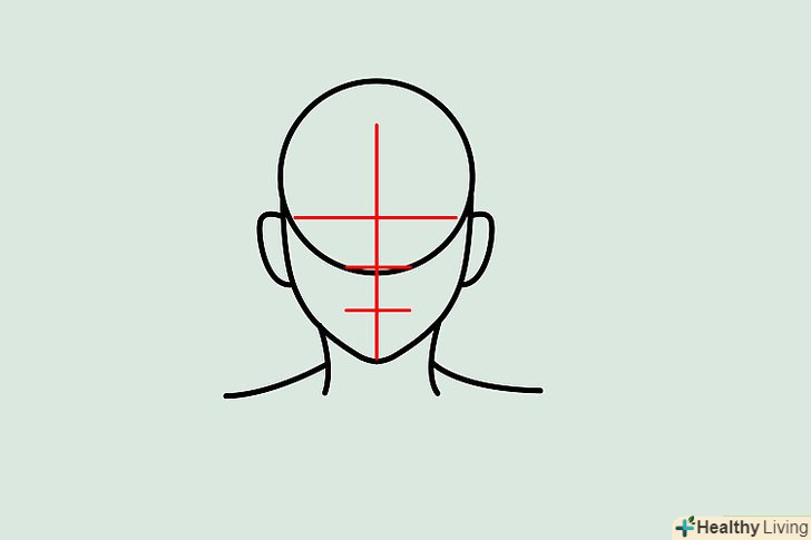 Зробіть контур обличчя. зробіть місця для очей, носа і губ, використовуючи горизонтальні і вертикальні лінії.
