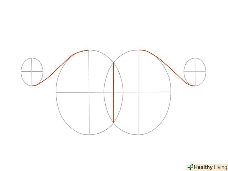 З двох сторін намалюйте криві лінії, які з'єднують серединну точку великих овалів з верхньою точкою обох маленьких овалів.
