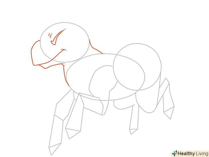 Намалюйте криві лінії, щоб з'єднати овал зліва, а також намалюйте деталі голови-очі, ніс і рот.