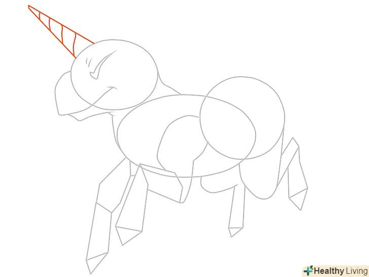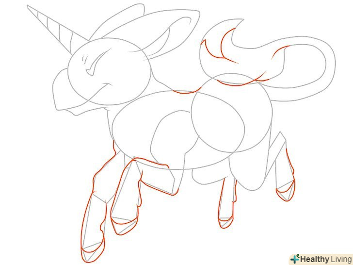Намалюйте чотири ноги єдинорога і копита єдинорога, використовуючи прямі і криві лінії.