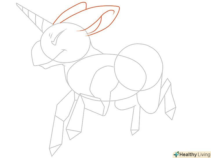 Намалюйте вуха, використовуючи закруглені прямі, що виходять від голови.