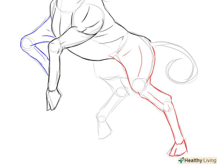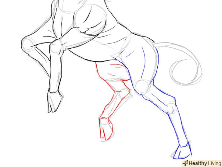 За допомогою кривих ліній вдосконаліть начерки ніг, копит і хвоста.