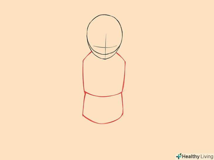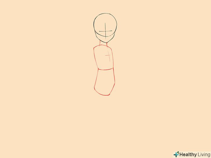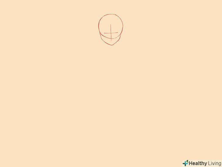 Намалюйте коло. додайте знизу вигнуту лінію (підборіддя). Позначте центр обличчя двома тонкими схрещеними лініями.