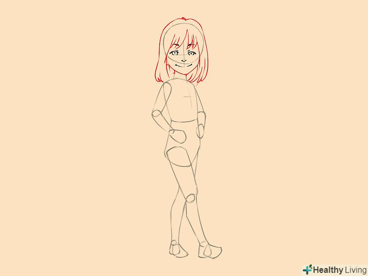 Намалюйте зачіску, яка Вам подобається, і обведіть чистові лінії обличчя.