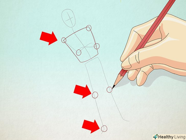 Намалюйте маленькі кола на місці кожного суглоба в тілі хлопчика (плечі, лікті, коліна, щиколотки) і квадрат для зображення тіла хлопчика.