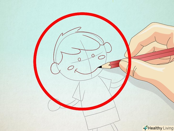 Видаліть непотрібні і заходять один на одного лінії. намалюйте голову хлопчика, використовуючи в якості орієнтира коло.