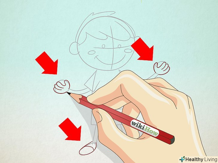Намалюйте основні лінії для рук і ніг хлопчика. Ви можете розташувати їх так, як вам подобається.