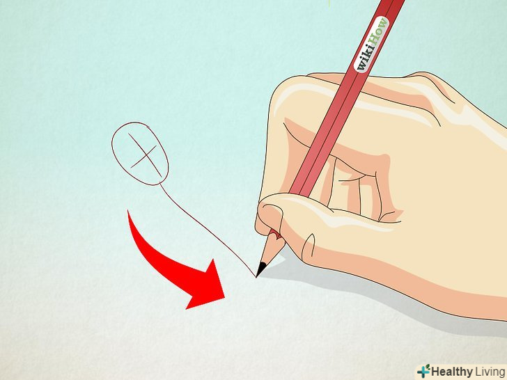 Намалюйте маленьке коло з лінією знизу (як повітряна кулька з мотузкою). намалюйте всередині кола хрест, зміщений вправо (або в іншу сторону).