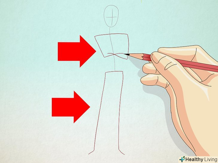 Намалюйте квадрат; це буде тіло хлопчика. Зобразіть руки і ноги невеликими квадратними або прямокутними формами відповідних розмірів. Зобразіть кисті рук і ступні за допомогою невеликих кіл або овалів.