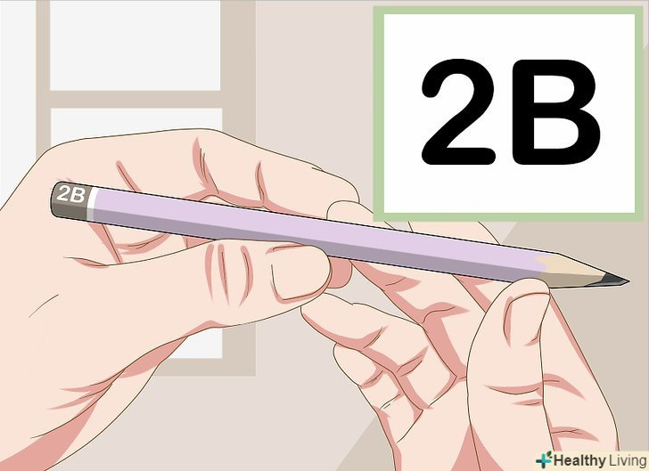 Виберіть олівець з грифелем середньої твердості (ТМ) для загального користування. це дерев'яні або механічні олівці з грифелем звичайної середньої твердості. Його можна використовувати для написання есе або заповнення відповідей типового тесту. [3]