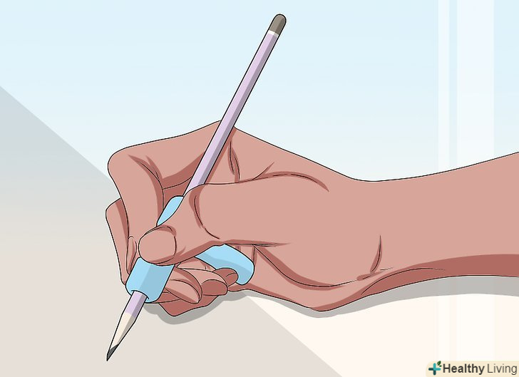 Купуйте ергономічний олівець, якщо після декількох хвилин письма у вас виникають судоми. знайдіть у продажу олівець з великою м'якою ручкою. Він збільшує товщину олівця, дозволяючи розслабити руку під час письма. [4]- У продажу також можна знайти гумові або м'які пластикові тримачі, які надягають на олівець. Вони продаються в канцелярських і книжкових магазинах поруч з ручками і олівцями.