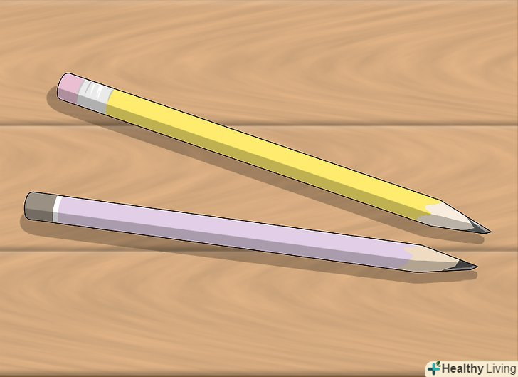 Виберіть дерев'яний олівець, якщо вам потрібно намалювати різні лінії. Наточіть олівець, щоб зробити лінії більш тонкими, або затупіть його, щоб лінії стали більш товстими. Лінія від звичайного олівця буде темнішою або світлішою в залежності від того, як сильно натискати на олівець. [5]
