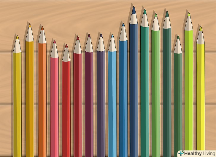 Використовуйте кольорові олівці, щоб окреслити або замалювати фігури на папері. якщо ви щось малюєте на линованной або фальцованной папері, віддайте перевагу олівцям найдешевших марок, на зразок Crayola. Заточіть їх як звичайний дерев'яний олівець, щоб зробити лінії більш тонкими, або затупіть, щоб лінії стали товщі. [8]- Якщо ви дійсно серйозно ставитеся до свого мистецтва, зайдіть в магазин художніх товарів і купіть кольорові олівці високої якості. Вони дорожчі, але, на відміну від звичайних кольорових олівців, дозволяють домогтися більш насичених кольорів. Деякі марки набагато простіше змішувати, ніж їх дешеві аналоги. [9]