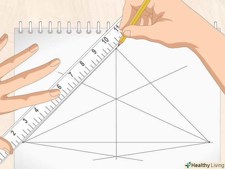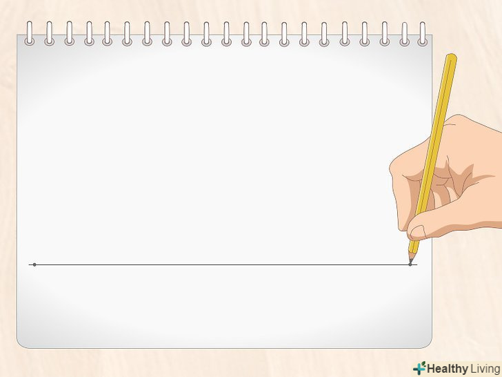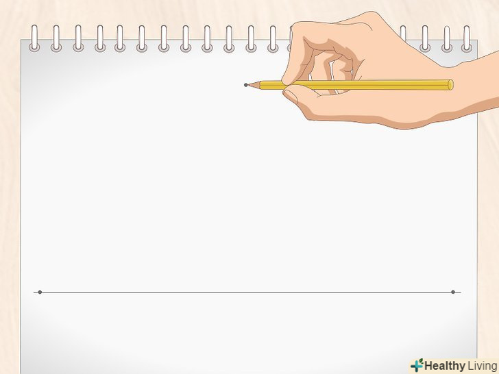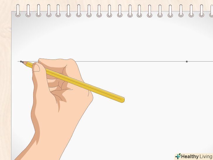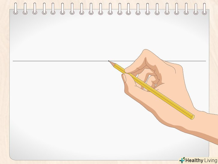 Проведіть на аркуші паперу лінію горизонту. Уявіть собі, де ви хочете розташувати рівень очей спостерігача, і злегка позначте цю лінію олівцем. Якщо ви хочете, щоб лінія була рівною, покладіть лінійку поперек аркуша паперу і проведіть уздовж неї олівцем — в результаті у вас вийде ідеально пряма лінія горизонту. [1]- Горизонт можна розмістити на будь-якій відповідній вам висоті. Наприклад, лінію горизонту можна провести так , щоб вона ділила лист в пропорції⅓:⅔,½: ½ або⅔:⅓. Низьке розташування лінії горизонту допоможе Вам приділити особливу увагу тому, що знаходиться вгорі, а якщо ви розмістите цю лінію у верхній частині листа, спостерігач буде дивитися вниз.