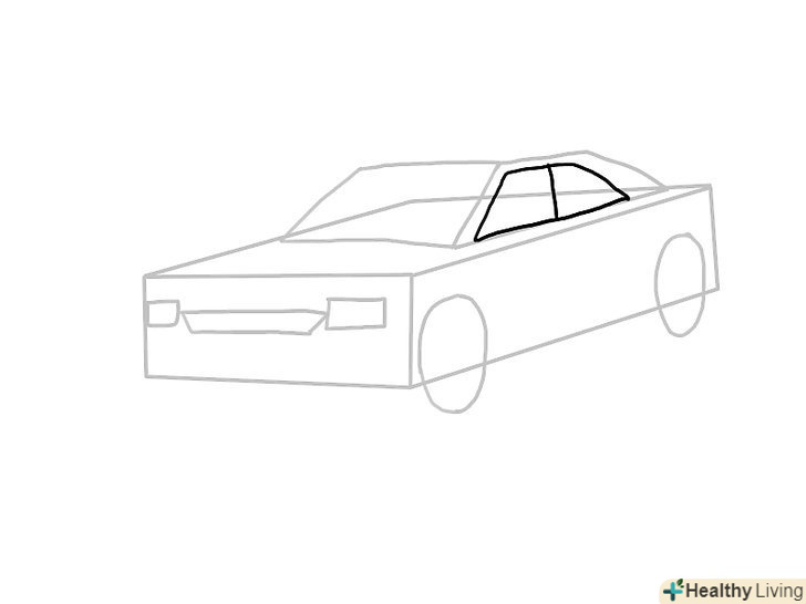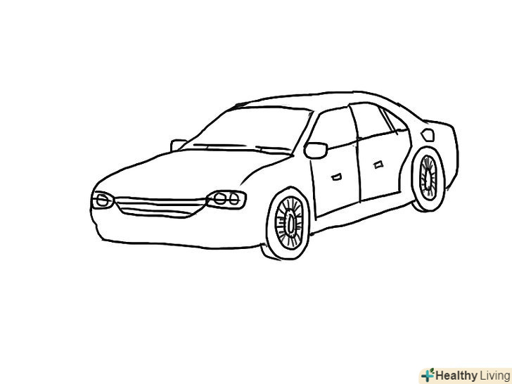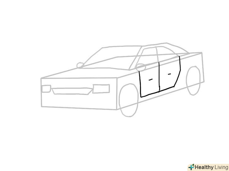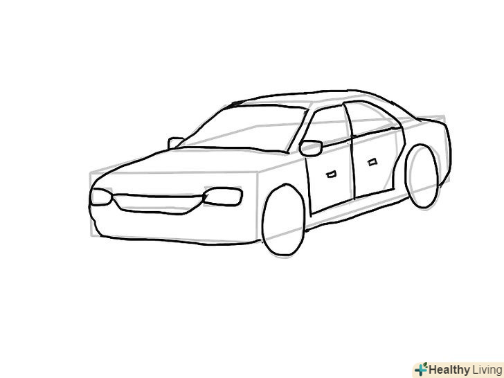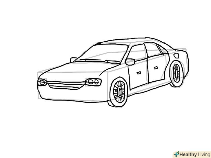Грунтуючись на обрисах, намалюйте основні деталі седана.