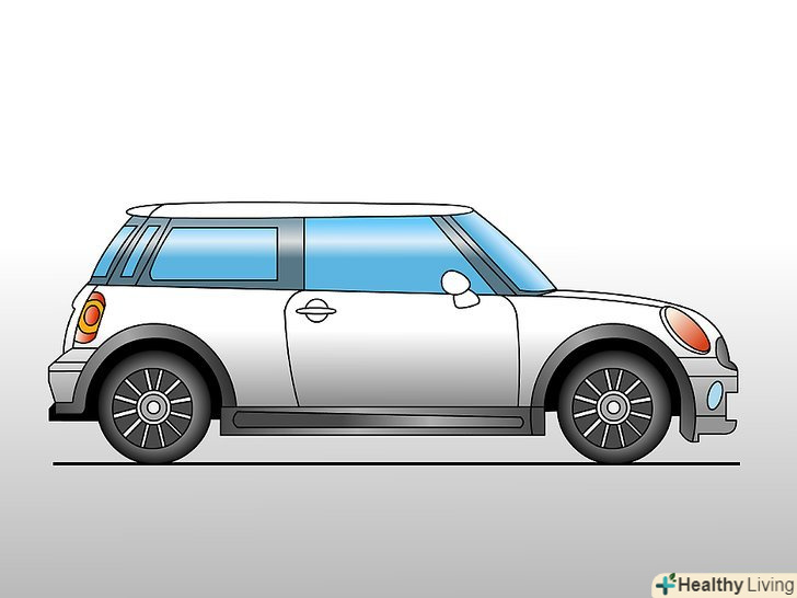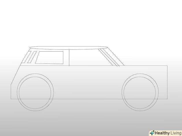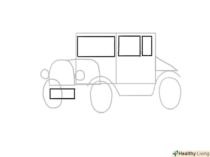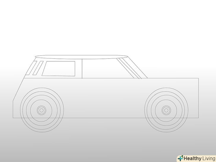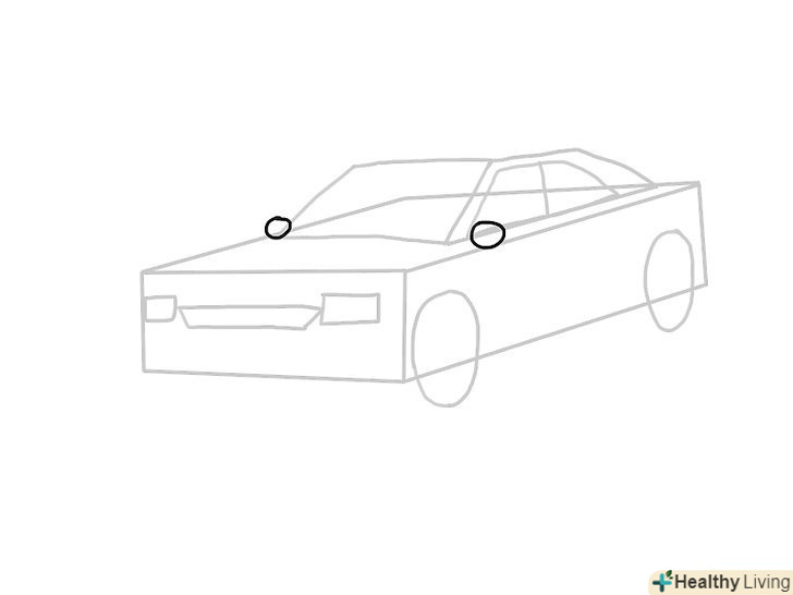 Намалюйте один прямокутник в нижній частині машини і ще кілька кіл і овалів для дзеркал і фар.