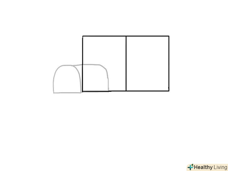 Намалюйте овал над прямокутником і додайте криву лінію з одного кута прямокутника до овалу. Намалюйте другу лінію від овалу до другого прямокутника.