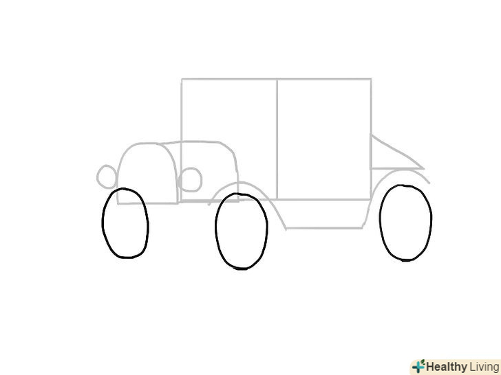 Намалюйте великий овал для тіла машини і два маленьких для коліс.
