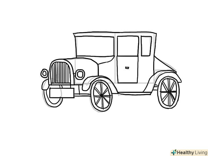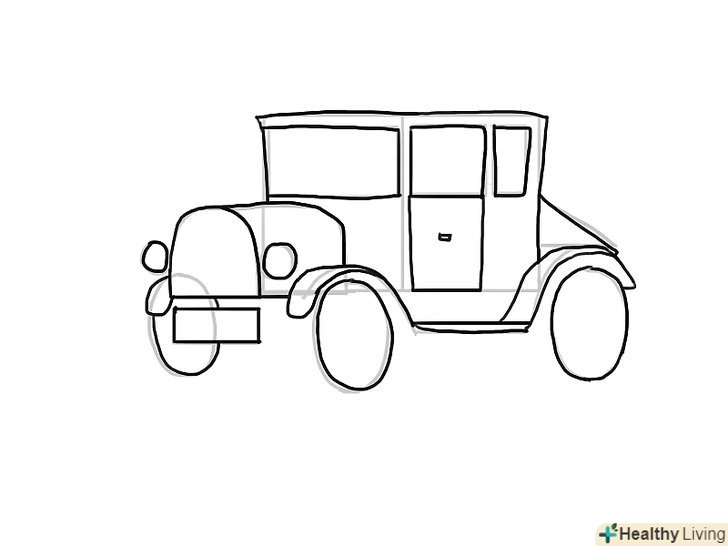 Додайте лінії, для деталей колеса. Додайте два овали для фар машини.