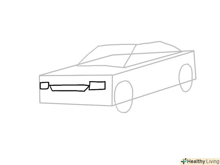 Намалюйте два прямокутники для фар і додайте перевернуту трапецію для решітки радіатора.