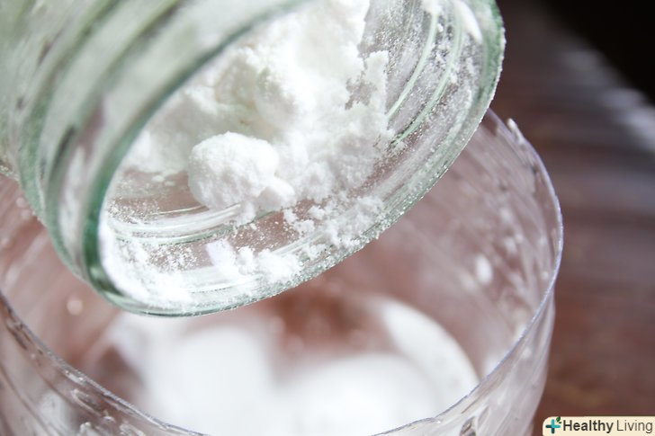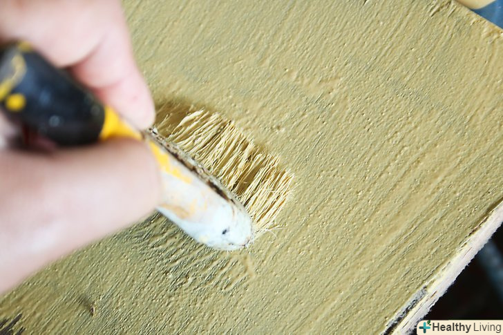 Змішайте в мисці воду з питною содою. налийте у велику миску 50 мл прохолодної води. Якщо це вода з-під крана, вона повинна бути кімнатної температури. Потім додайте в миску приблизно 100 г питної соди. [18]- Ця недорога фарба використовується, щоб надати меблям Вінтажний, злегка потертий вигляд.