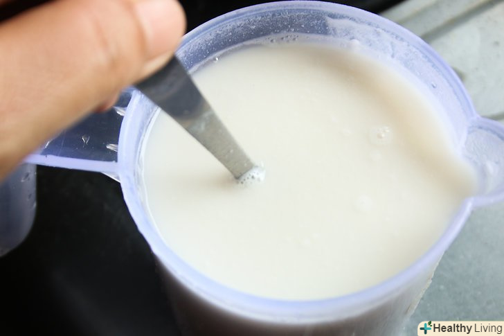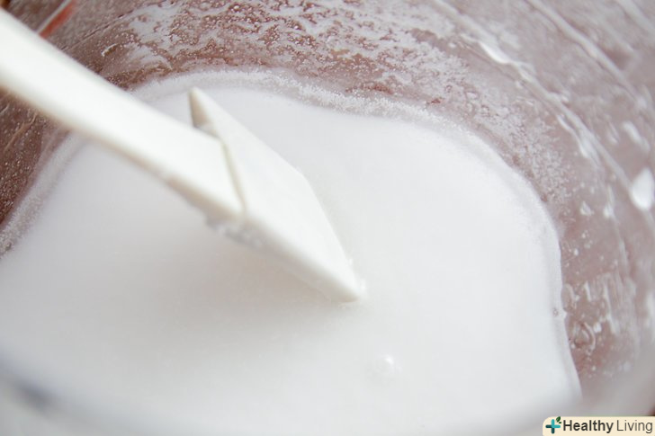 Перемішайте суміш до однорідної консистенції. круговими рухами перемішуйте суміш в мисці ложкою або лопаткою, поки сода повністю не розчиниться. Рідина повинна виглядати абсолютно однорідною.