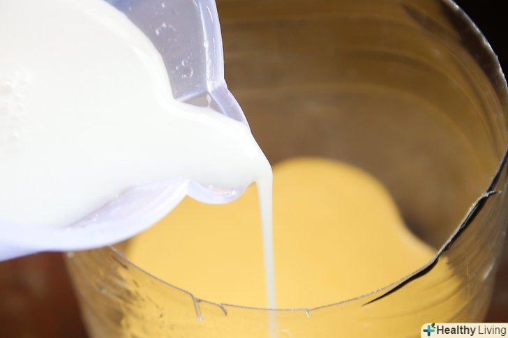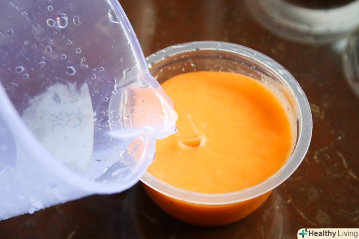 Розлийте отриману основу для фарби по невеликих ємностей. поділіть основу для фарби на рівні частини, розлив її по декількох невеликих ємностей — наприклад, по розетках або формах від гріючих свічок. Для кожного кольору знадобиться окрема ємність. [9]
