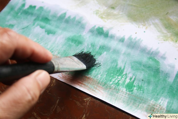 Перемішайте основу і харчовий барвник зубочисткою. перемішуйте основу для фарби і доданий в неї харчовий барвник, поки колір не стане однорідним. Для кожної ємності використовуйте окрему зубочистку, інакше кольору в різних ємностях перемішаються. Після того як фарба перемішана, можна почати малювати. Така фарба добре лягає на папір для акварелі, оскільки акварельний папір краще тримає воду, ніж звичайна писальний папір. [11]- Не забувайте промивати кисть, після того як ви з її допомогою змішували кольори.