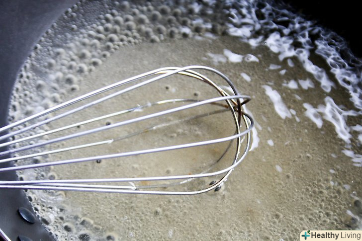 Закип'ятіть в каструлі воду з цукром. налийте в каструлю 250 мл води, поставте на плиту і включіть конфорку. Коли вода нагріється, додайте в каструлю 450 г білого цукру. Помішуючи, доведіть суміш до кипіння. [6]- Ви можете купити готовий кукурудзяний сироп. Тоді нічого кип'ятити не доведеться, і ви просто змішаєте готовий сироп в іншими інгредієнтами.