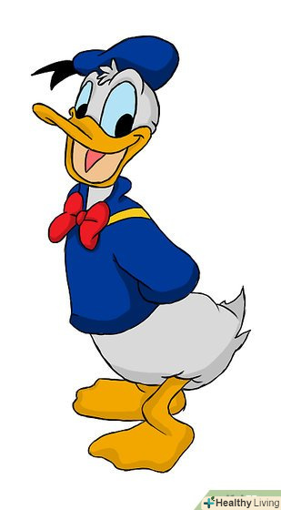 - Намалюємо Дональда Дака. ще один персонаж з цієї компанії, Дональд відомий вибуховим темпераментом, на цій же ілюстрації він представлений позитивніше: щасливо посміхається, руки за спиною.