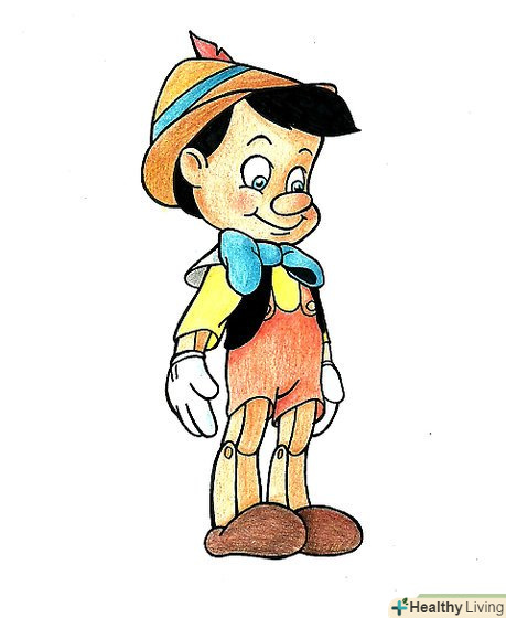 Намалюємо Піноккіо. цей персонаж також відомий як Буратіно, ця ожила лялька малюється м'якими квітами з великою кількістю згладжених граней.