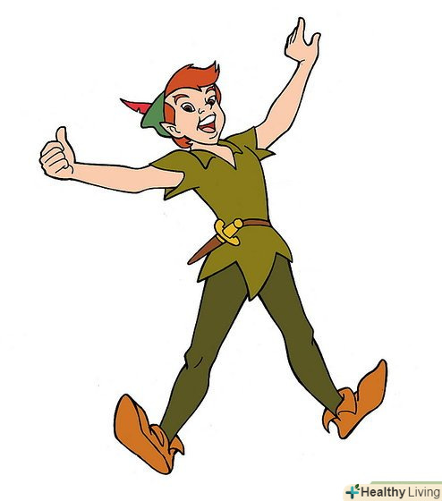 Намалюємо Пітера Пена, хлопчика, який не дорослішає. Руки широко розкинуті в сторони, на фізіономії - широка хитра усмішка.