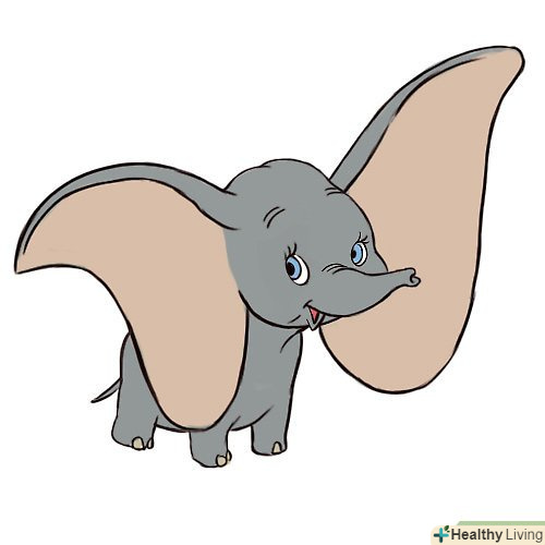 Намалюємо Дамбо, літаючого слоника. особливу увагу приділяємо, звичайно, його вухам. Саме вони принесли йому таку славу.